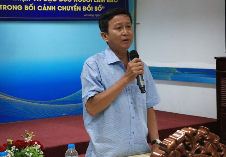 Tại lớp tập huấn, Nhà báo Nguyễn Thanh Sơn (Biên tập viên cao cấp, phụ trách Văn phòng đại diện Tạp chí Cộng sản tại ĐBSCL) chia sẻ nhiều nội dung liên quan đến chuyển đổi số báo chí; tác động tích cực và tiêu cực của chuyển đổi số đến trách nhiệm, đạo đức người làm báo; những yêu cầu về trách nhiệm, đạo đức của người làm báo; đôi nét về báo chí trí tuệ hiện nay…